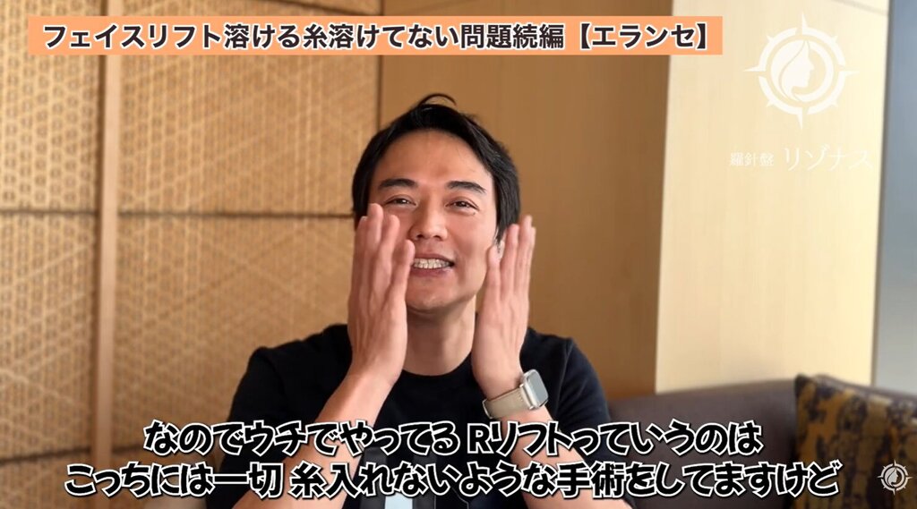 動画の中では、糸や注入で起こる問題を避けるための考え方として、このRリフトの方針が語られています。