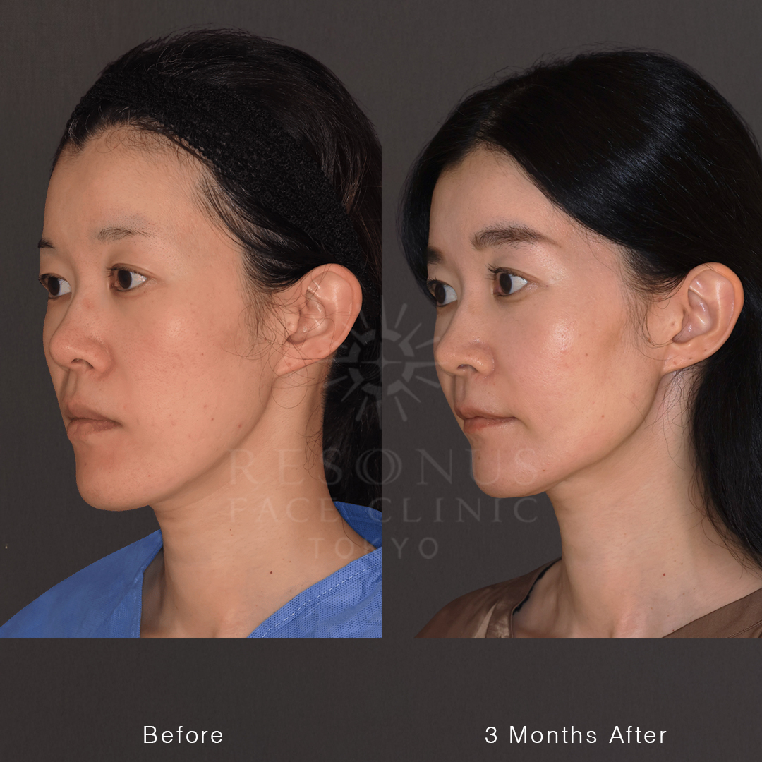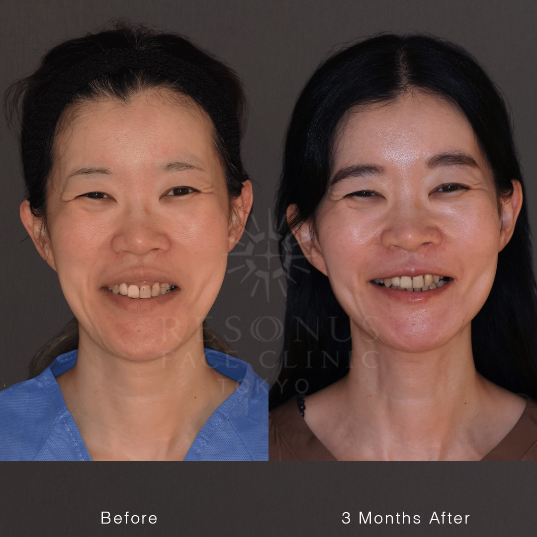 40代以降の骨格改善は、コンプレックスの改善だけでなく、アンチエイジングも見据えた「デザイン」と「機能面」を両立した施術が重要です。骨格バランスを根本から整えることで、エイジング変化が起こりにくい“土台”づくりを目指し、表面的な若返りでは得られない構造的な若返りにつながります。なお40代では、術後3ヶ月時点でも20代の術後3ヶ月に比べて組織の張りが低下しているため、腫れや“モフモフ感”がやや長引くことがあります。
